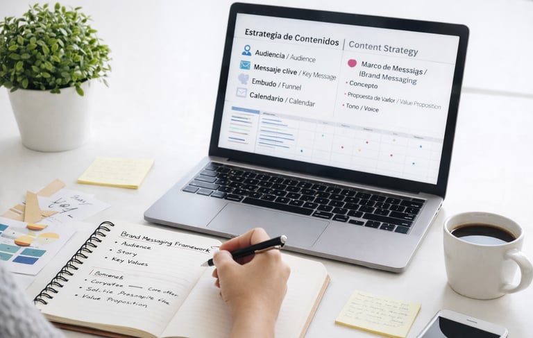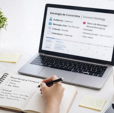Trabajo de forma remota desarrollando piezas visuales, estrategias de contenido y materiales que ayudan a que cada proyecto avance con orden y consistencia.